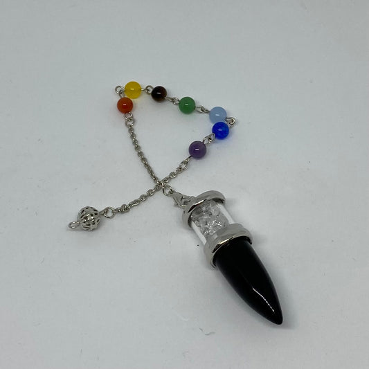 Obsidian and Clear Quartz Crystals Pendulum with Chakra chain